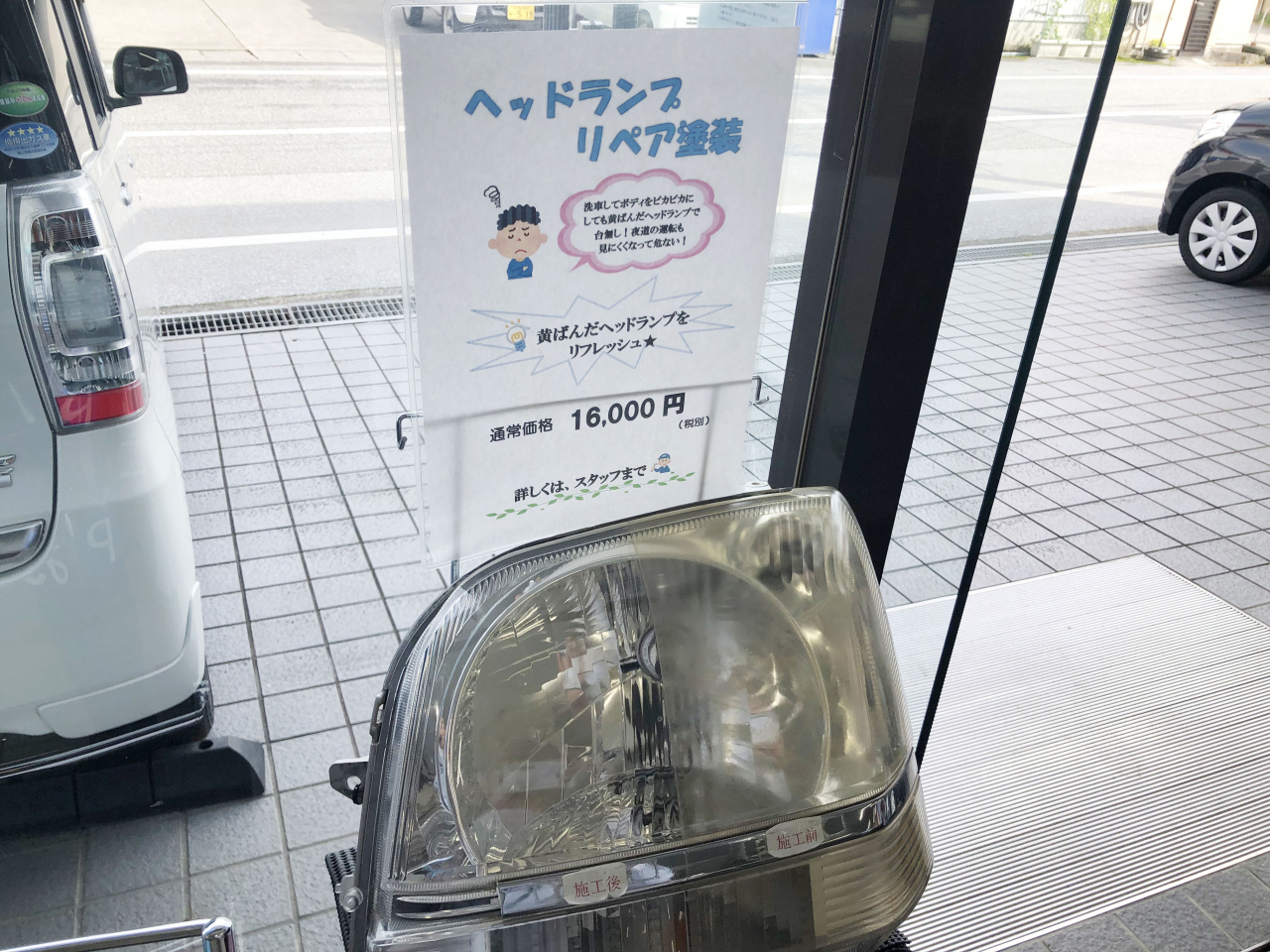 ヘッドライト黄ばんでいませんか?リペア塗装でヘッドライトがリフレッシュします。